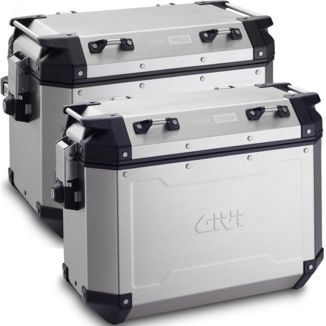 Trekker Outback side-case, with aluminium structure and profiles. Available in two different sizes: 37 ltr and 48 ltr. Equipped with the Monokey® Cam-Side fitting system in die-cast aluminium and inserts in reinforced technopolymer.